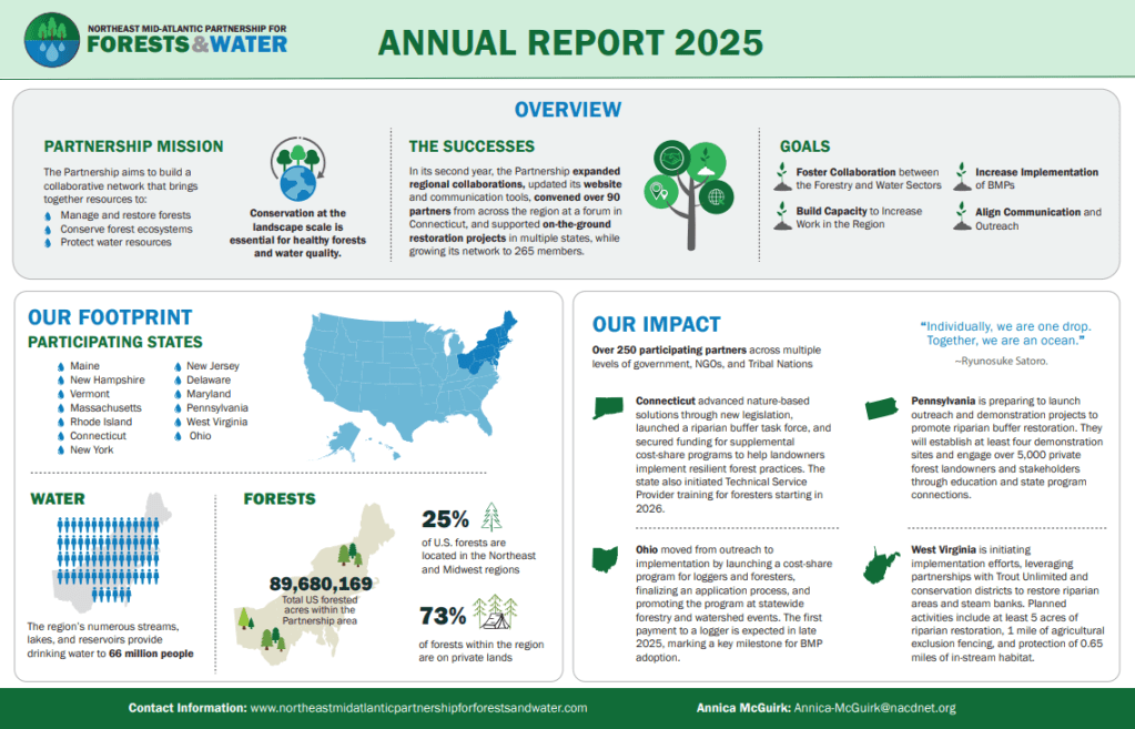 As 2025 comes to a close, we’re taking a moment to reflect on a year of collaboration, momentum, and shared impact across the Northeast and Mid-Atlantic. From strengthening partnerships to advancing on-the-ground restoration efforts, this year demonstrated what’s possible when diverse partners work toward a common goal: healthy forests and clean water.