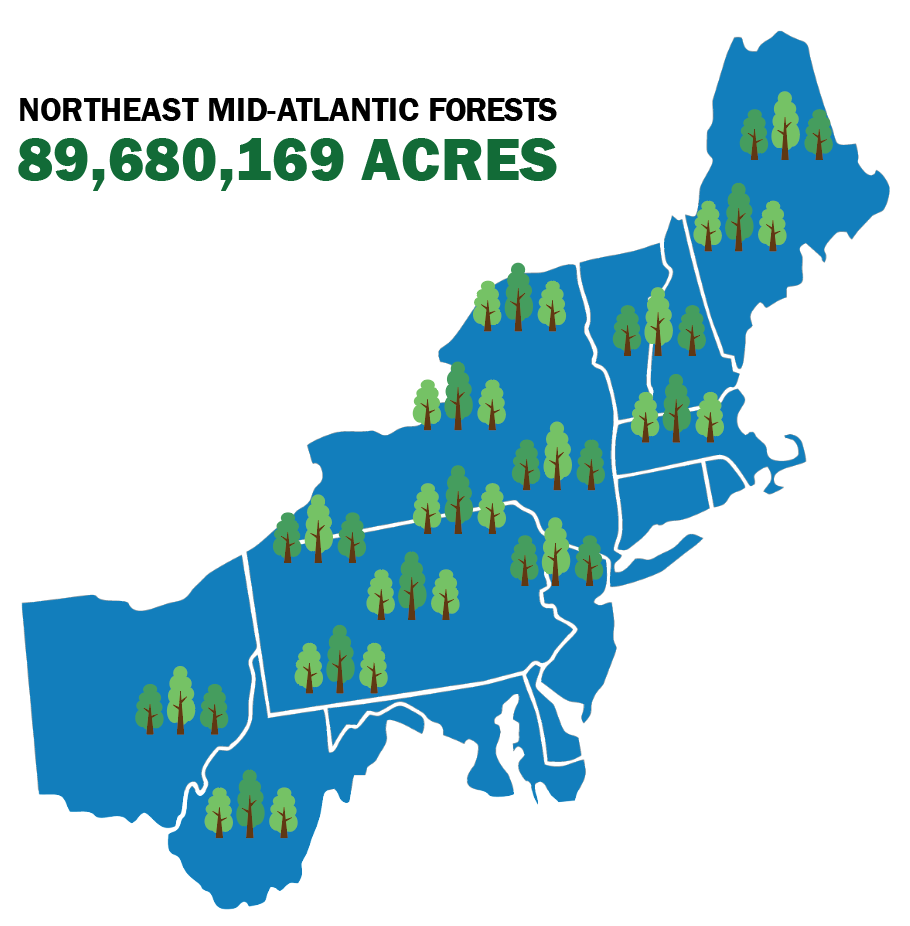 The Northeast Mid-Atlantic Partnership for Forests and Water (“the Partnership”) is an interagency, multi-partner collaborative to enhance concerted, science-based restoration of priority forest landscapes to improve water quality and quantity in 13 states in the Northeastern and Mid-Atlantic United States. The Partnership’s footprint encompasses Maine, New Hampshire, Vermont, Massachusetts, Rhode Island, Connecticut, New York, New Jersey, Delaware, Maryland, Pennsylvania, West Virginia, and Ohio. The region’s numerous streams, lakes, and reservoirs provide drinking water to 66 million people, or around 40% of the American population. Approximately 25% of U.S. forests are located in the Northeast and Midwest regions, with a total of 89,680,169 forested acres within the Partnership area.