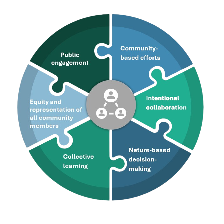 The values of the Partnership (see graphic to the right) create the framework for making governing and operational decisions. We are committed to creating respectful spaces for intentional collaboration that allow for equitable input. In making all voices heard, we produce outcomes that are both community-informed and focused.